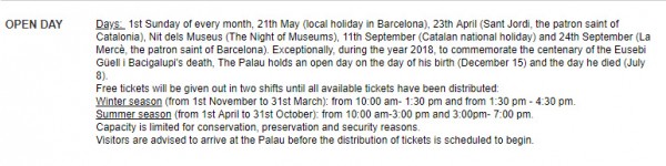 ▶ 구엘궁전 홈페이지 무료입장 정보 참조